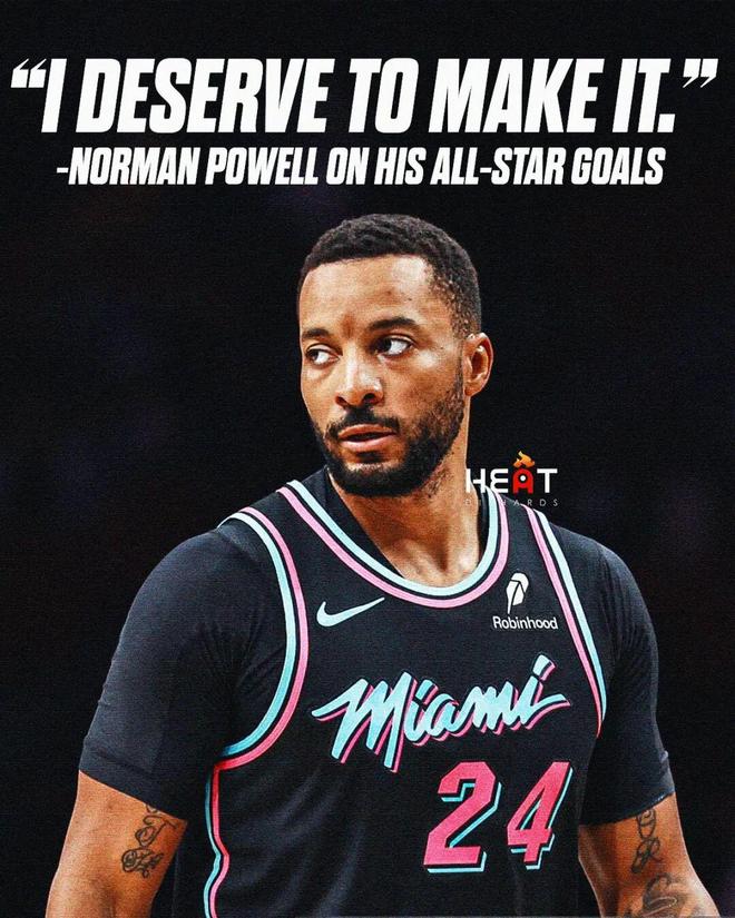 在希罗受伤只打了6场、阿德巴约状态退步的背景下,这个问题应该没有任何悬念,就是诺曼鲍威尔,后者正在打出生涯最强的一个赛季。