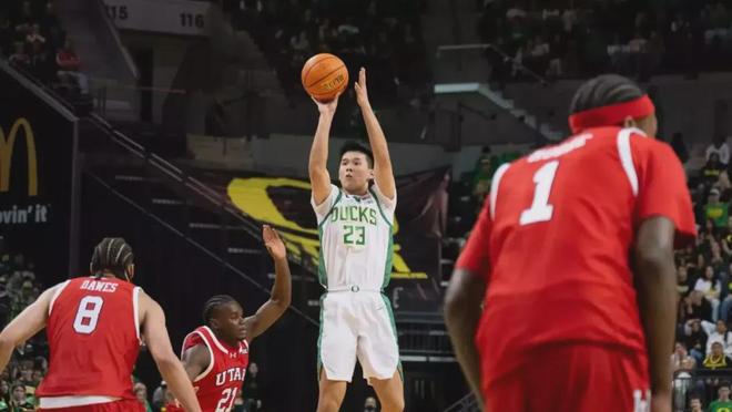 登场33分钟,14投8中,三分12中6、罚球2中1,砍下23分1篮板5助攻2抢断,多项数据创个人NCAA生涯新高。