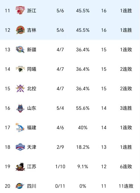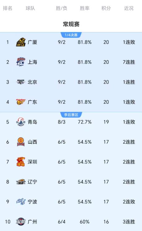 随着北京险胜,辽宁大胜,CBA最新积分榜:前四皆9胜2负 排名有变