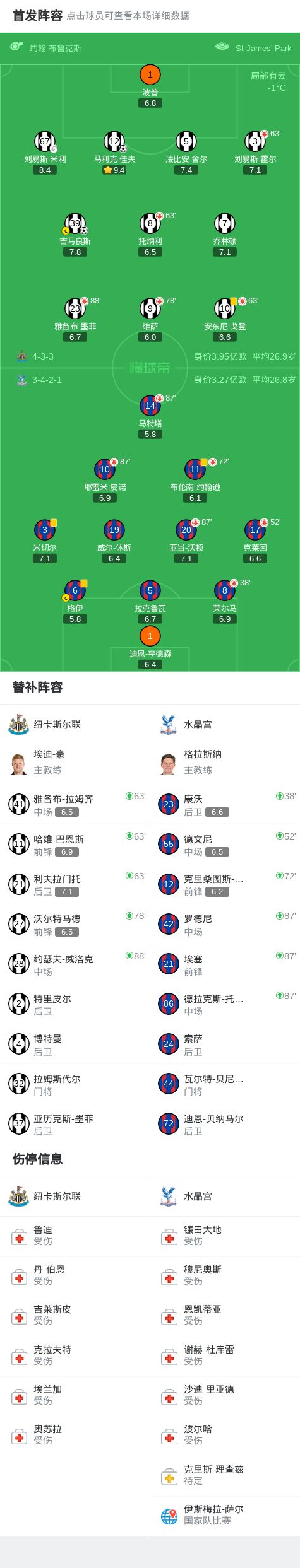 纽卡2-0水晶宫,吉马良斯破门+中框,马利克-佳夫建功