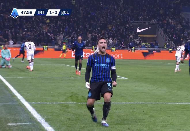 意甲第18轮主场迎战博洛尼亚的比赛中,劳塔罗-马丁内斯的进球帮助国际米兰取得2-0的领先。